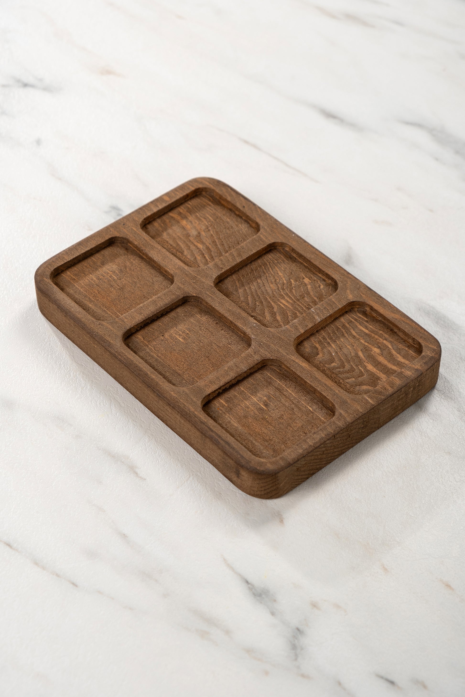 Paket İçeriği; 1 adet 6 bölmeli dörtgen ahşap stand.