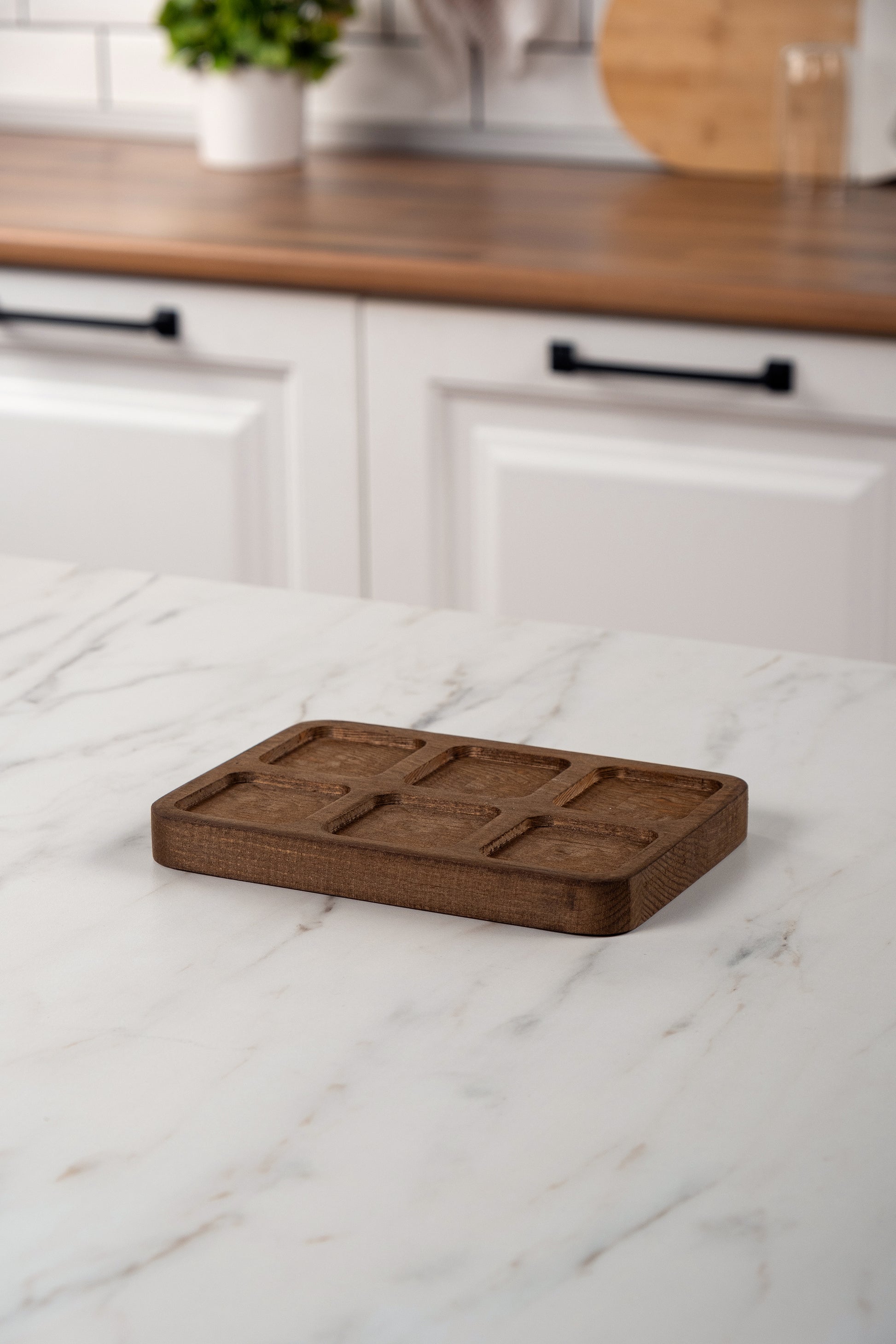 Mienda Home 6 Bölmeli Ahşap Dörtgen Baharatlık Standı