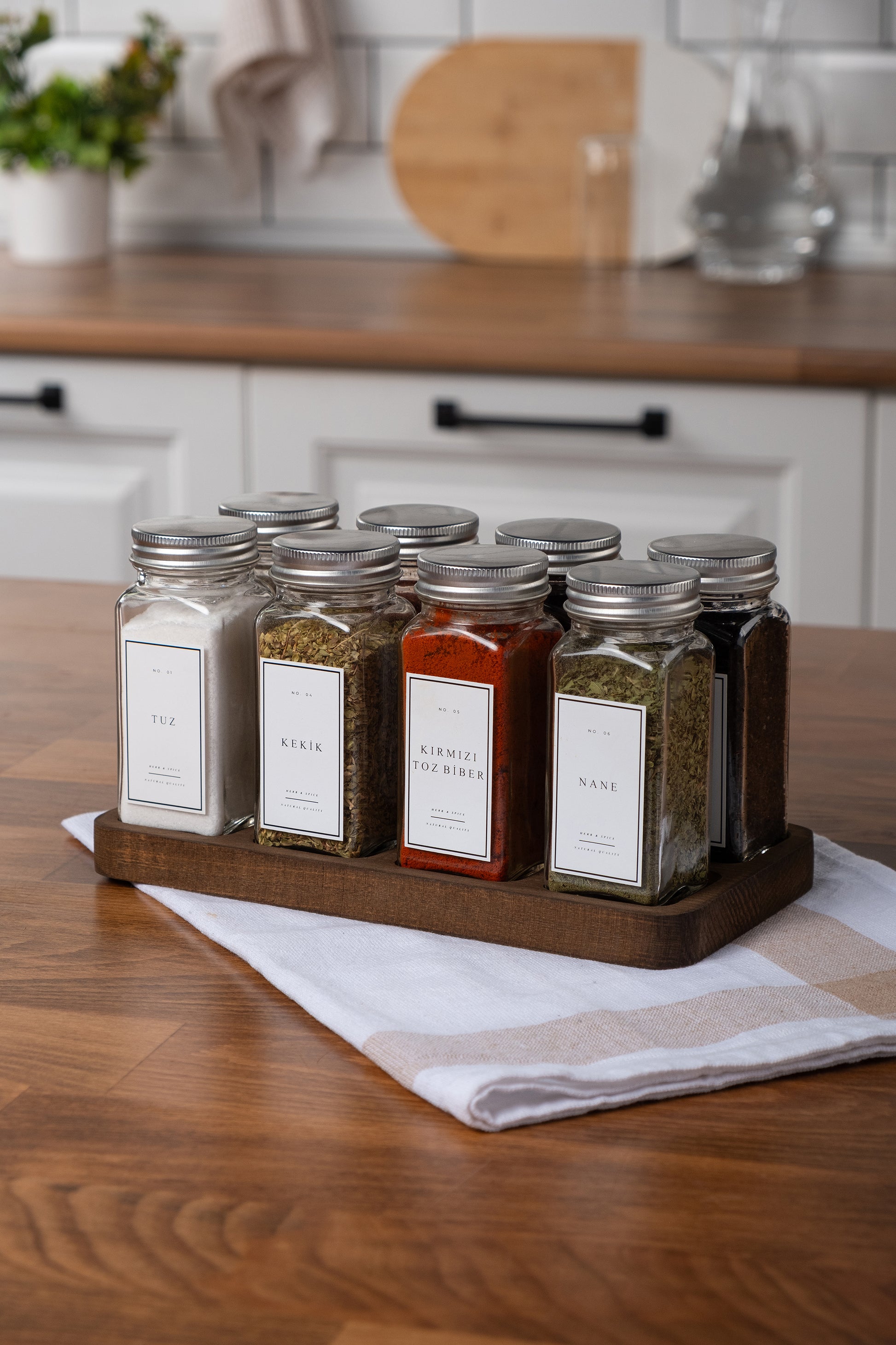 Baharatlık üzerindeki ve kapaktaki etiketler sayesinde üstten veya önden hızlı bir genel bakış imkanı sunarak baharatlarınızı kolayca bulmanızı sağlar.