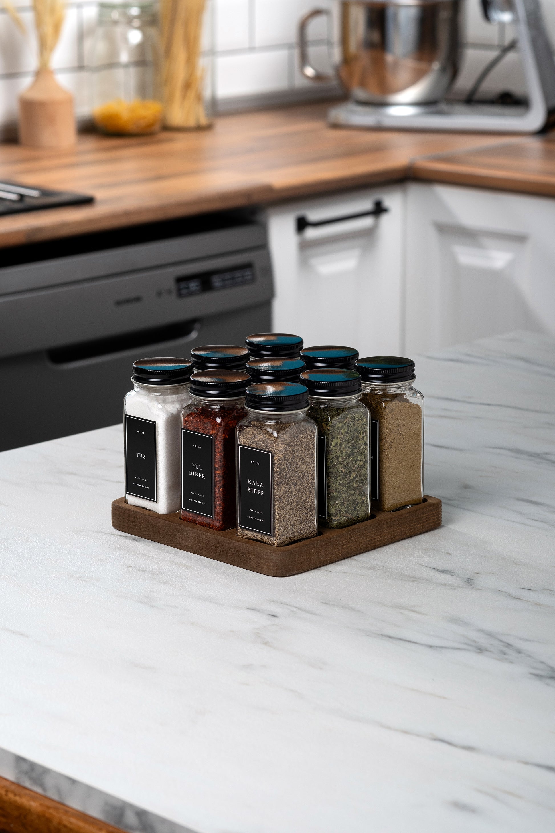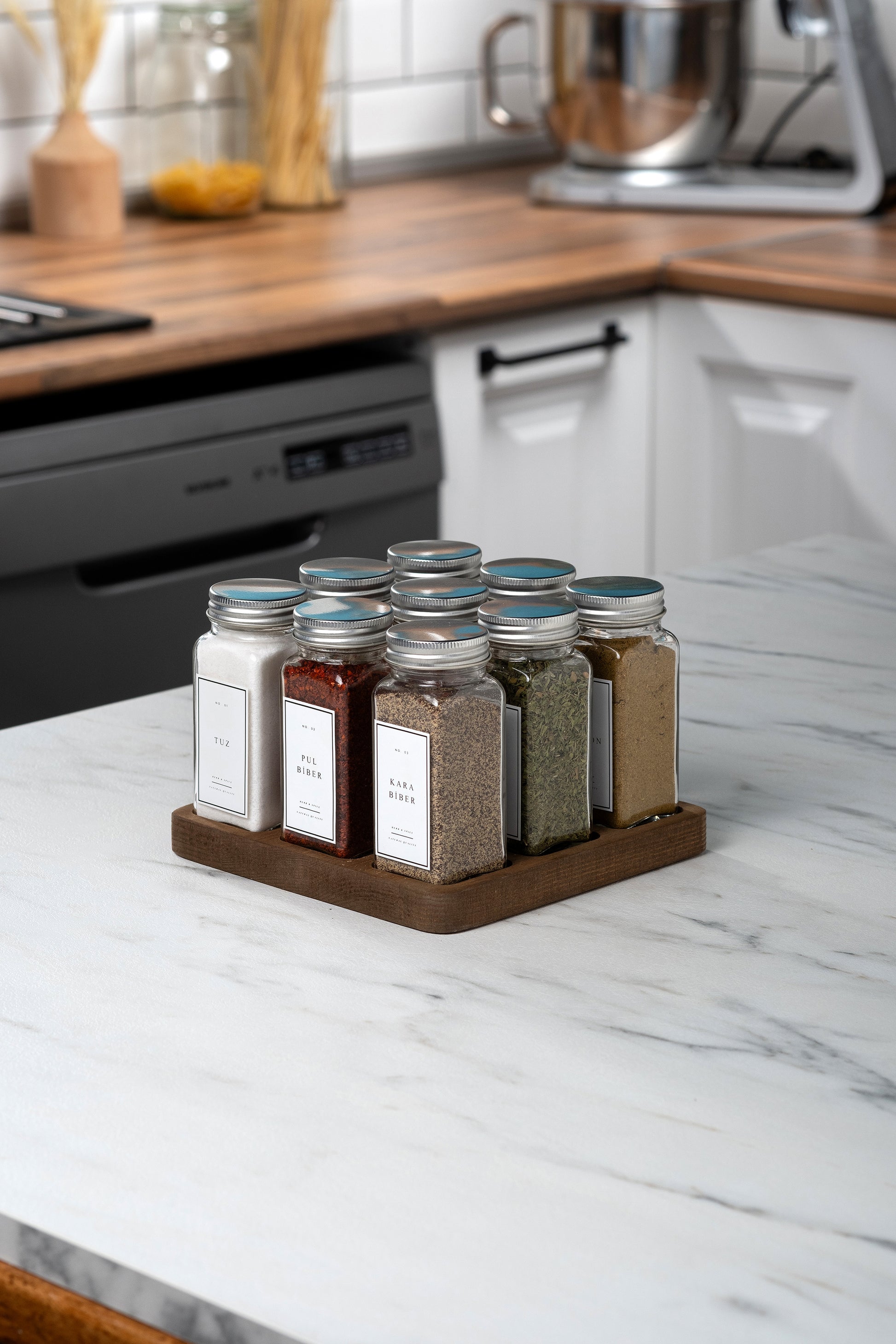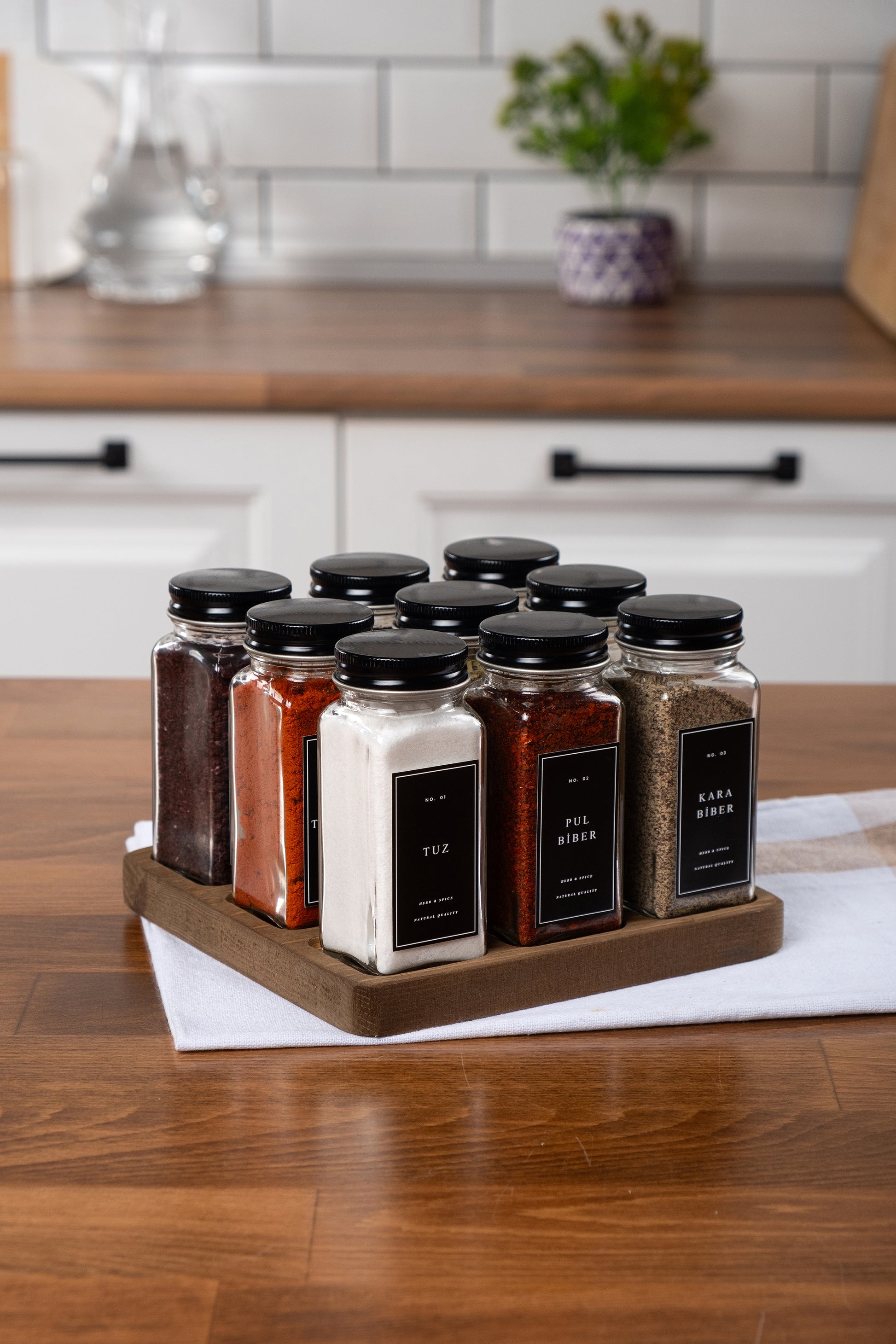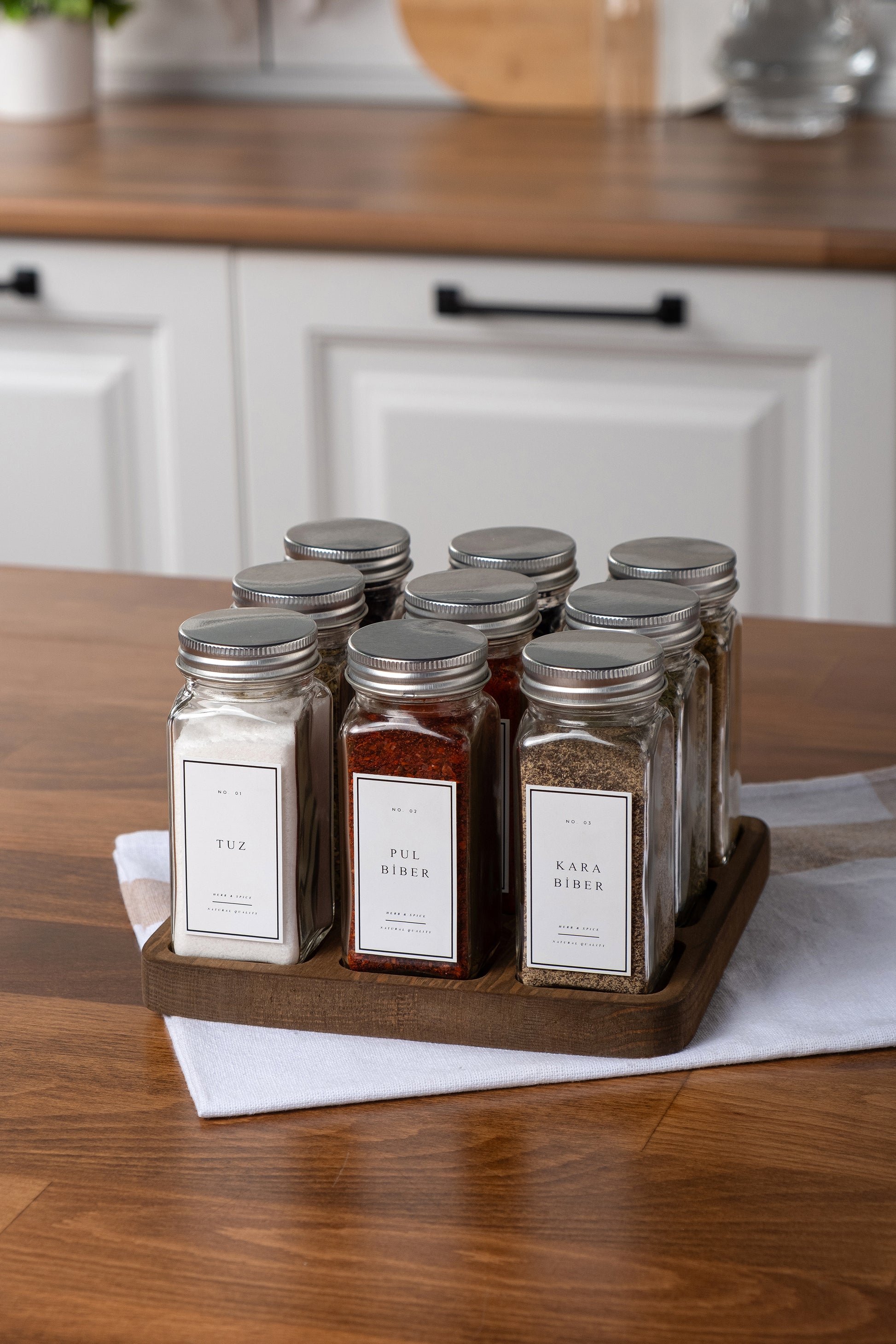 Baharatlık üzerindeki ve kapaktaki etiketler sayesinde üstten veya önden hızlı bir genel bakış imkanı sunarak baharatlarınızı kolayca bulmanızı sağlar.