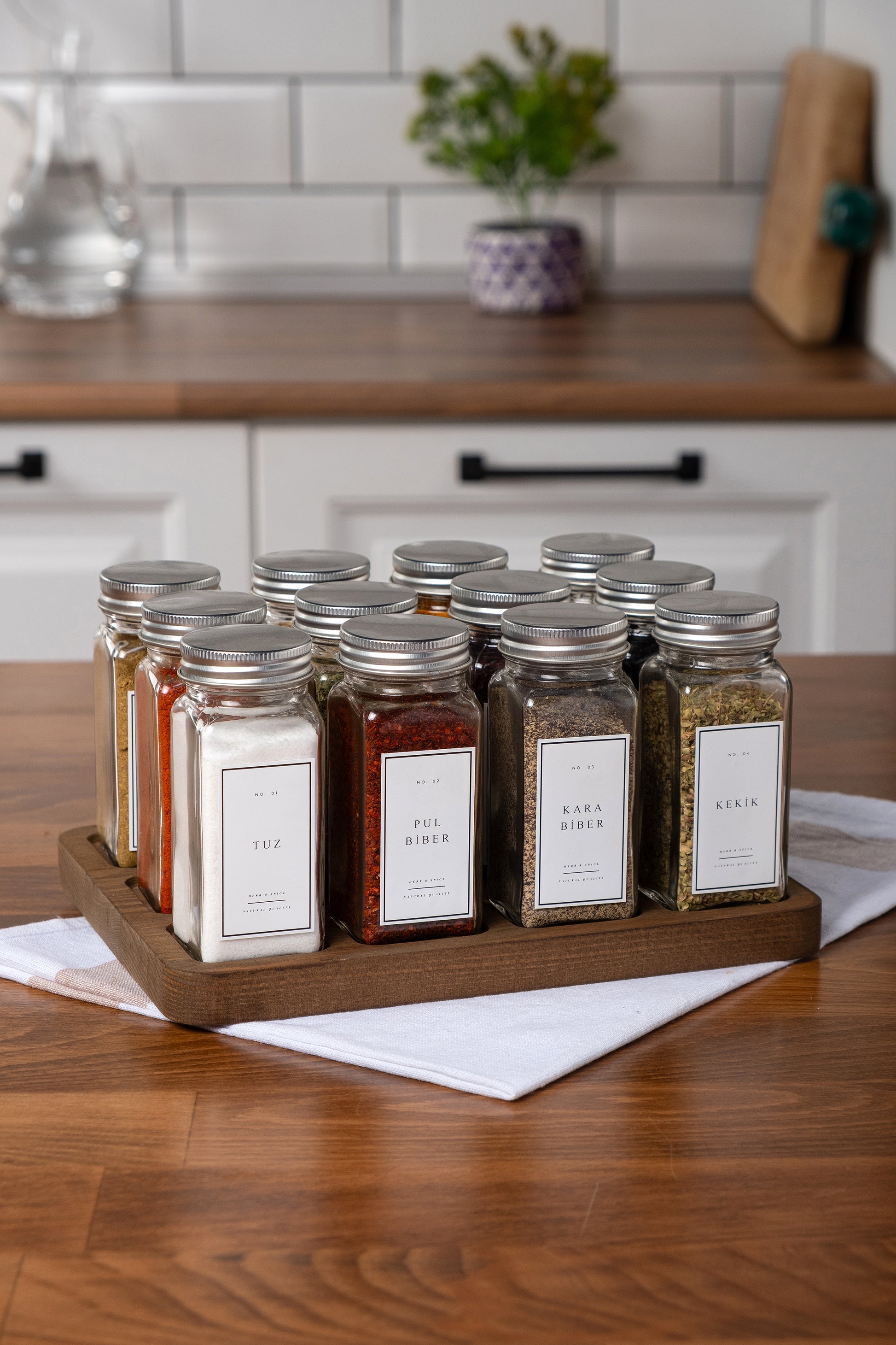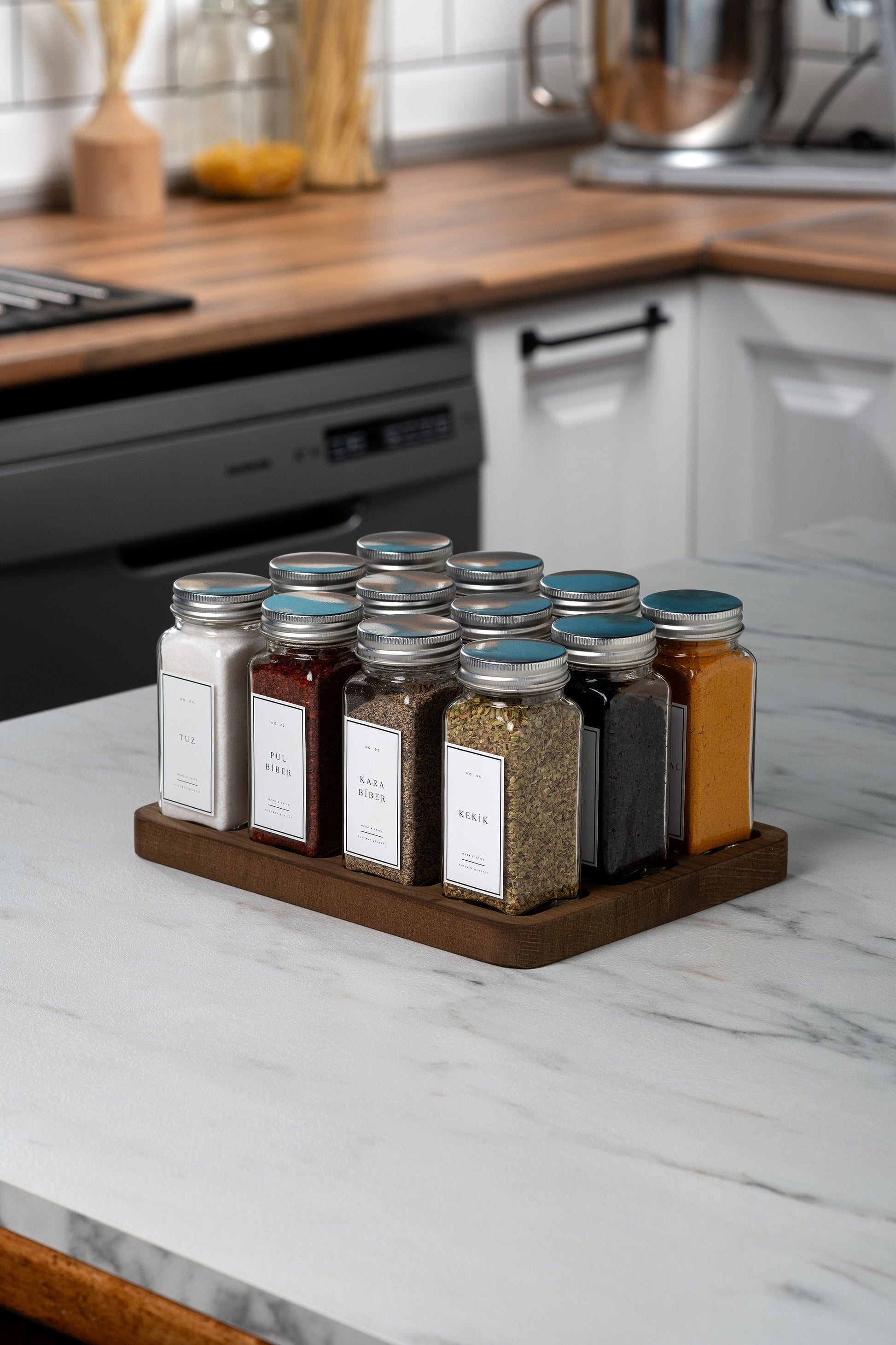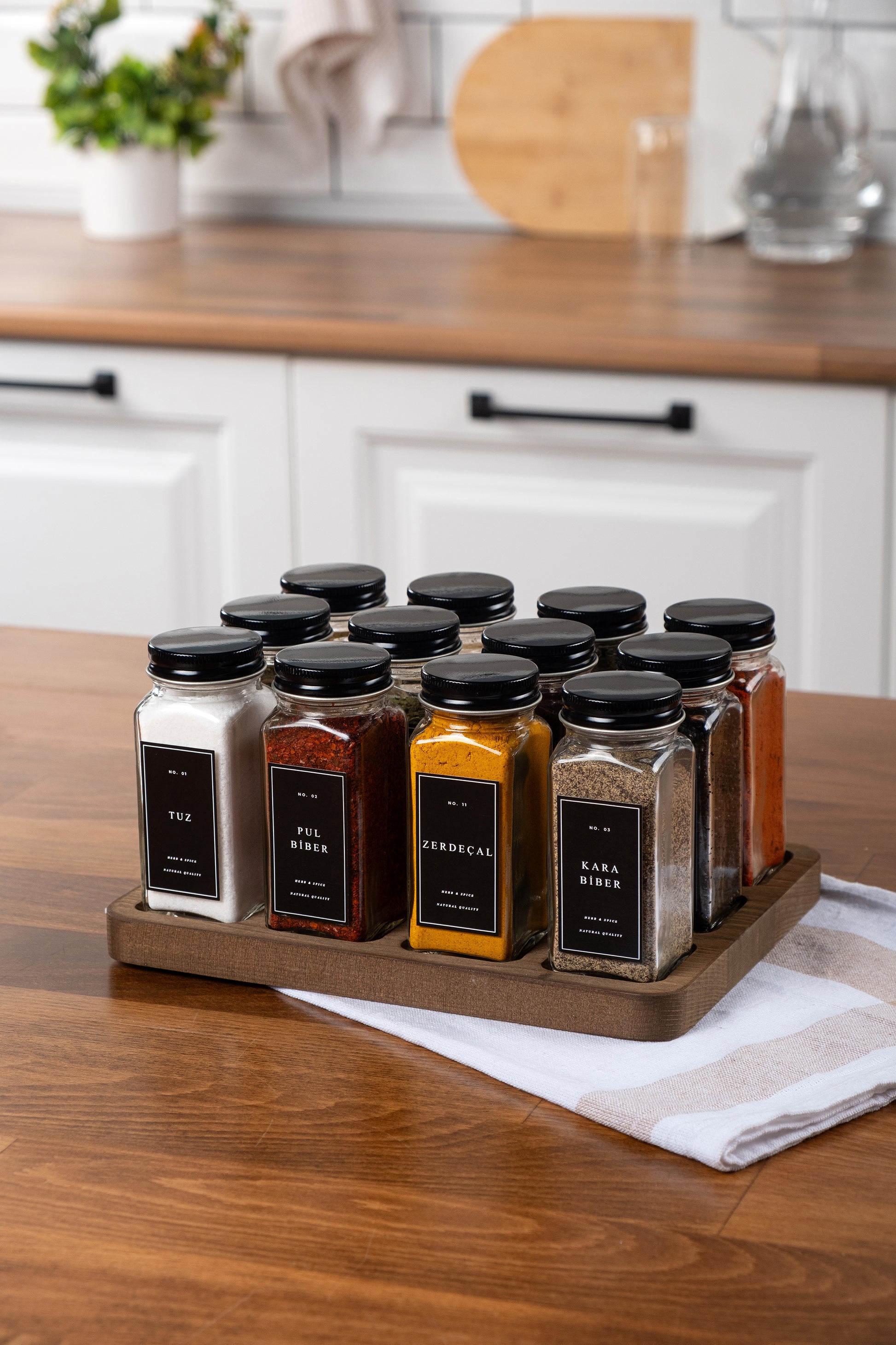 Baharatlık üzerindeki ve kapaktaki etiketler sayesinde üstten veya önden hızlı bir genel bakış imkanı sunarak baharatlarınızı kolayca bulmanızı sağlar.