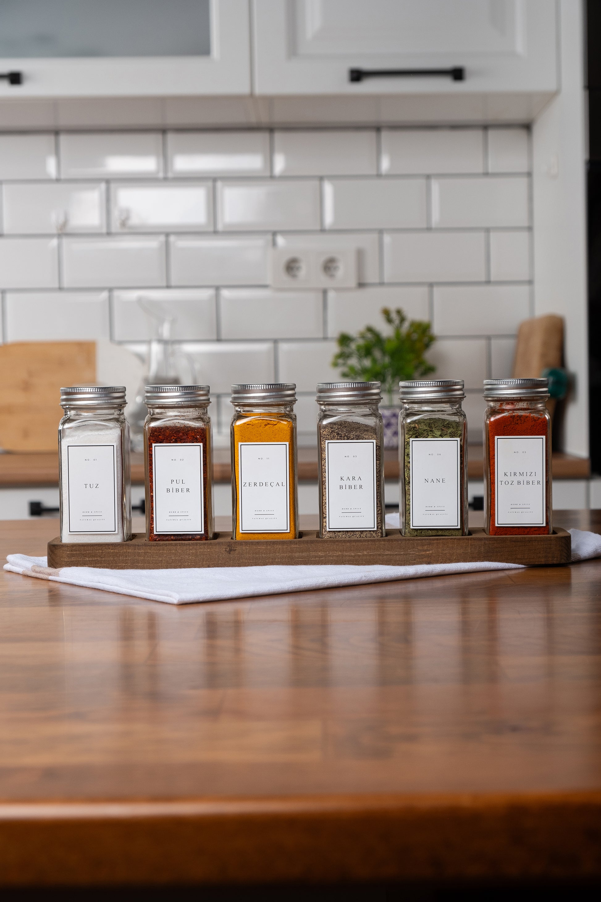 12 adet farklı etiket çeşidi ile baharatlık setinizi istediğiniz gibi oluşturabilirsiniz,