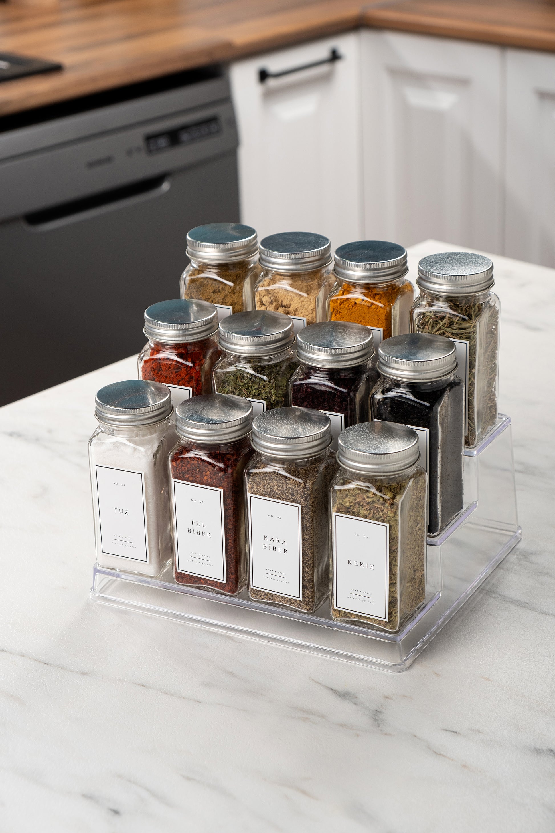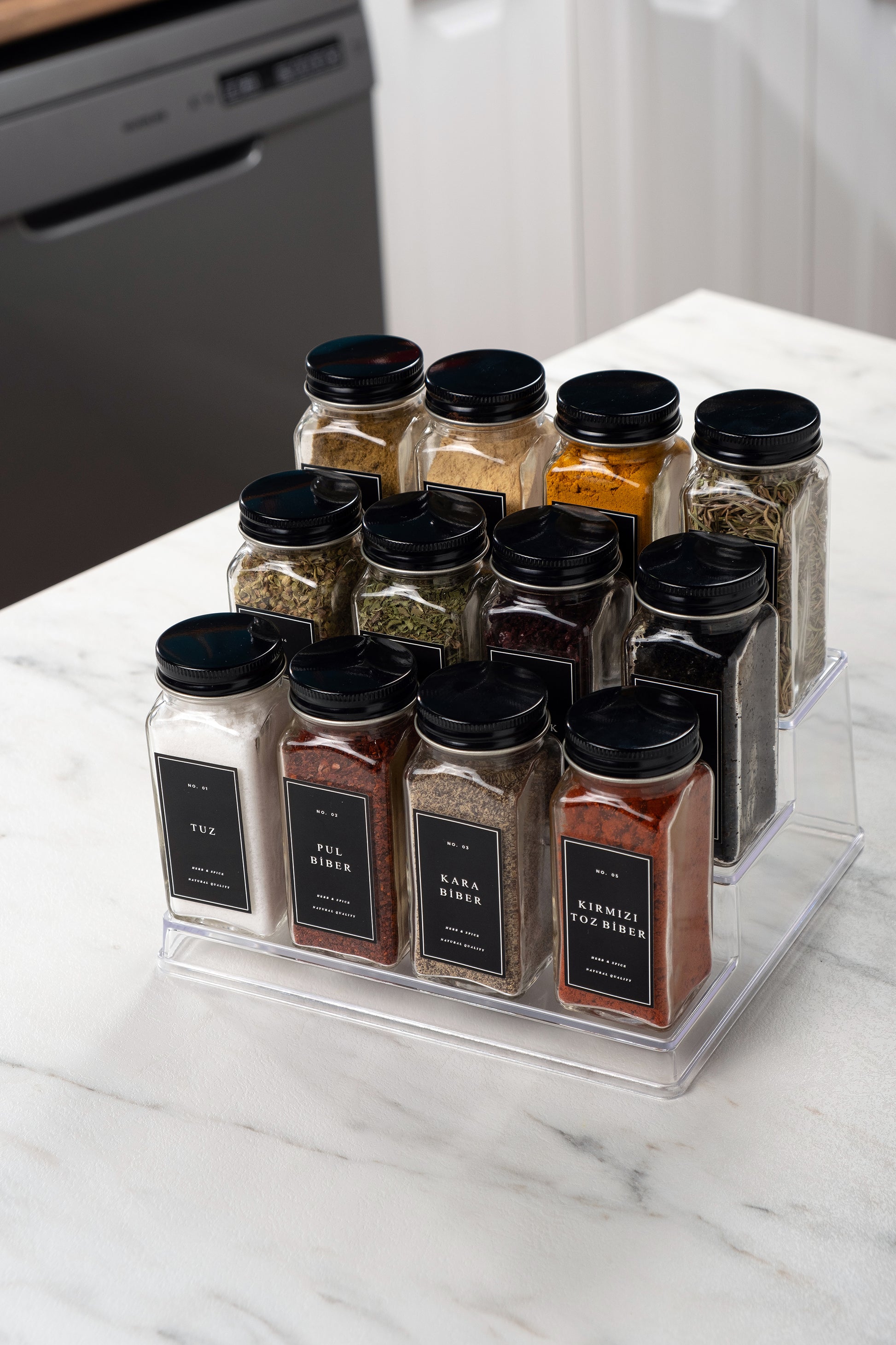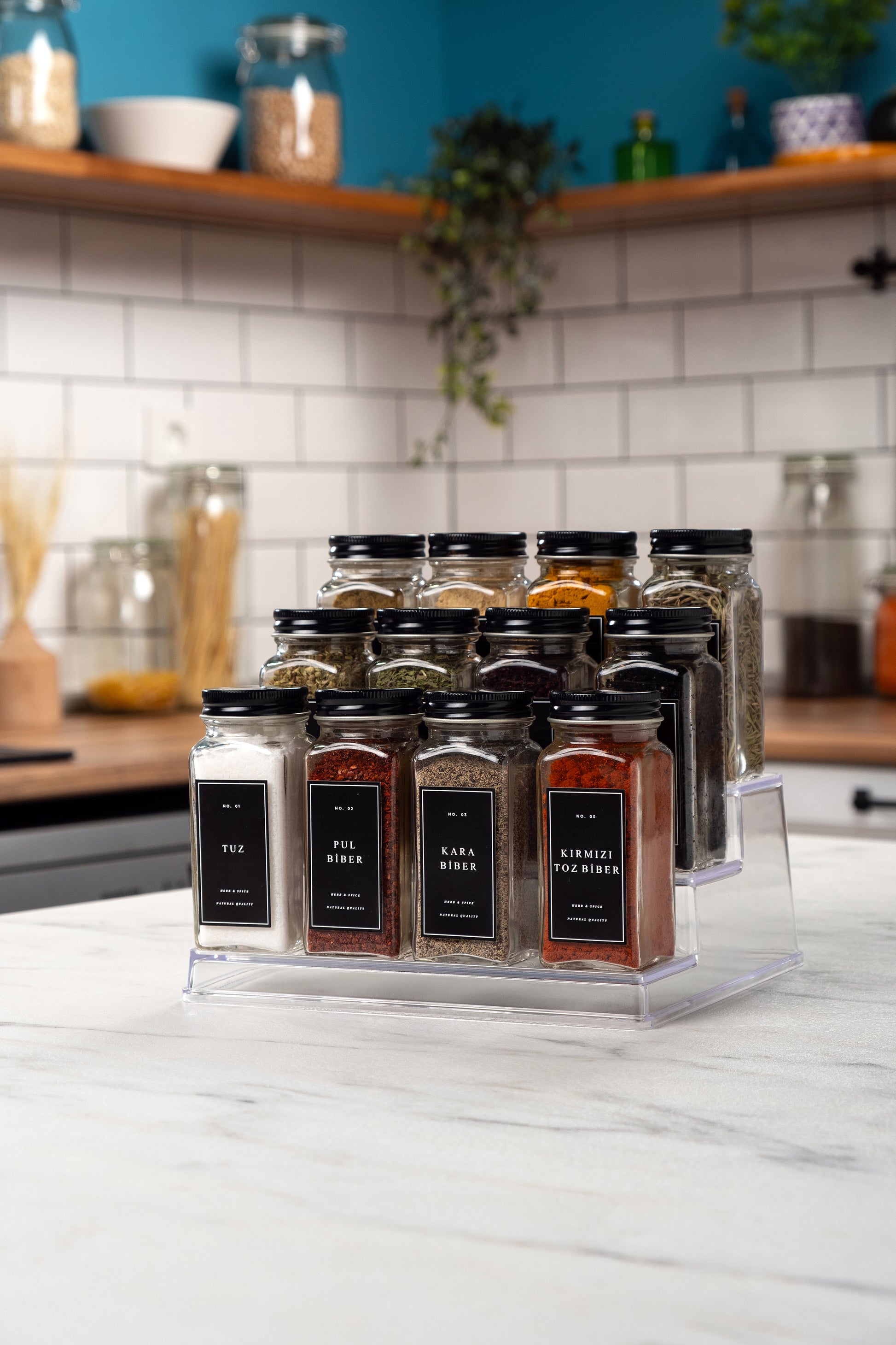 Baharatlık üzerindeki ve kapaktaki etiketler sayesinde üstten veya önden hızlı bir genel bakış imkanı sunarak baharatlarınızı kolayca bulmanızı sağlar.