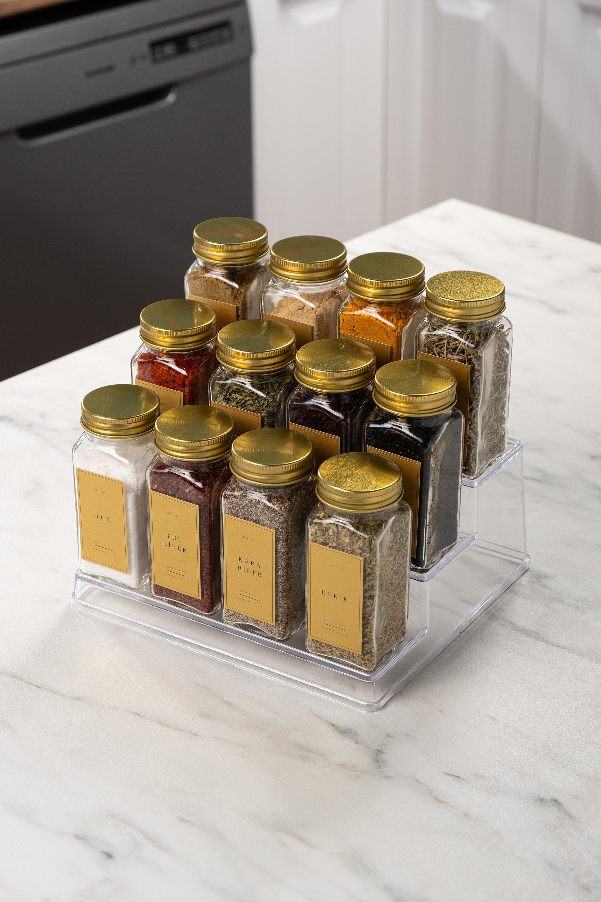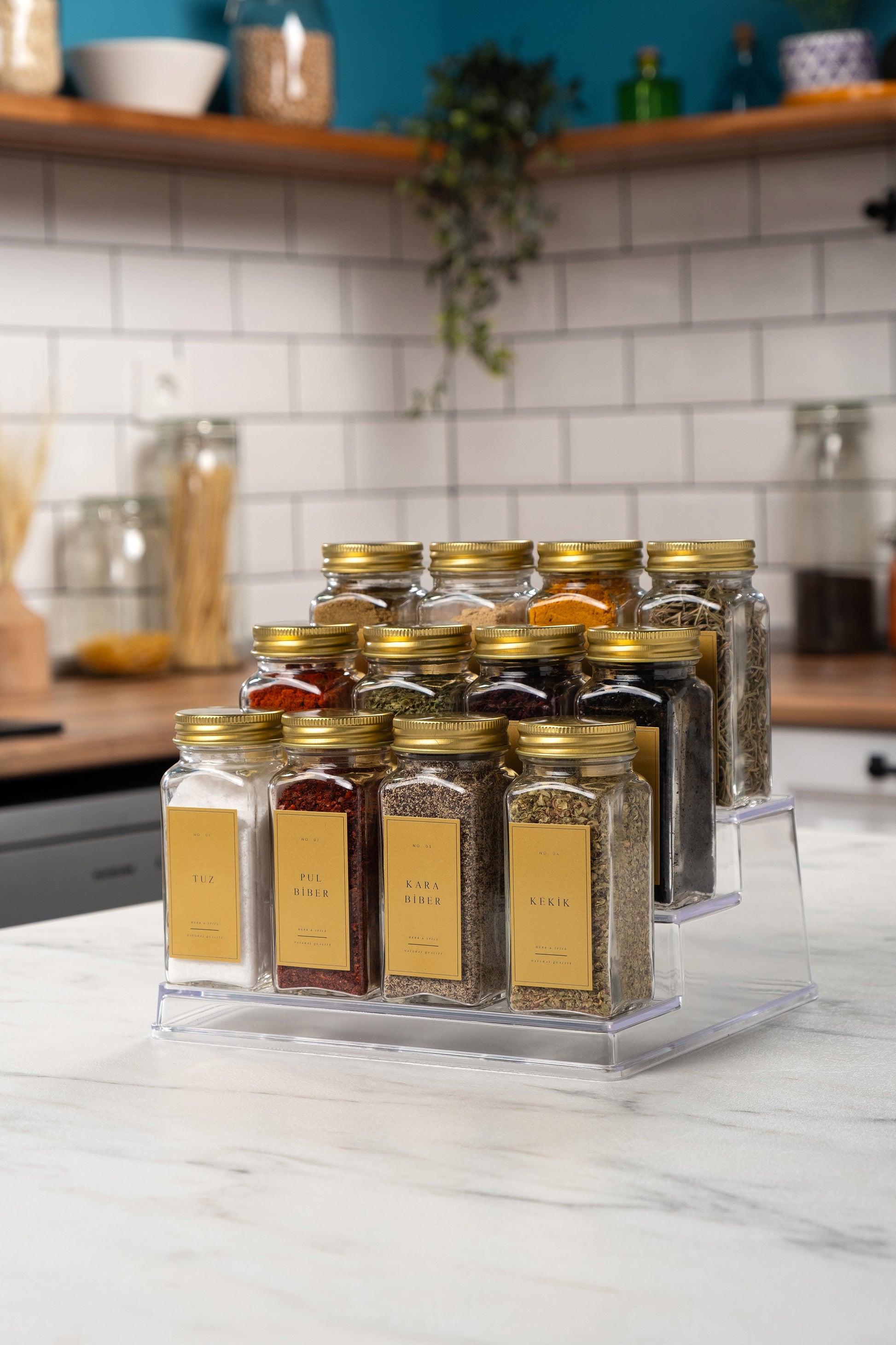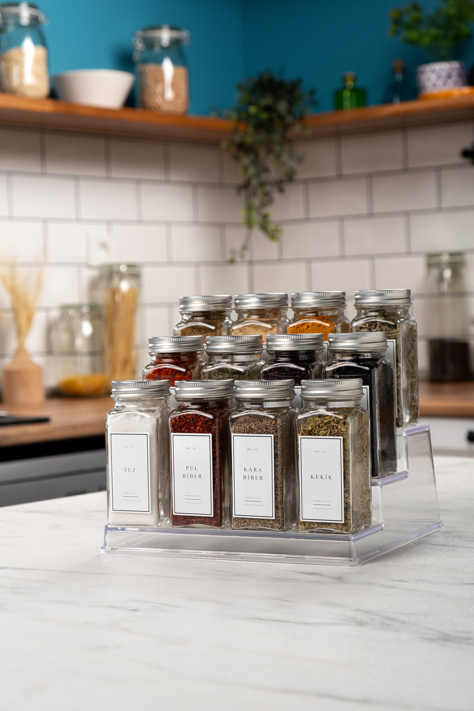 Baharatlık üzerindeki ve kapaktaki etiketler sayesinde üstten veya önden hızlı bir genel bakış imkanı sunarak baharatlarınızı kolayca bulmanızı sağlar.
